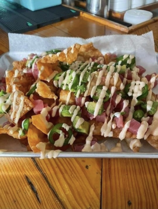 Great place to stop and check out in North Myrtle. The owners are so nice and beyond helpful! All of the food we got was absolutely amazing! You have to try the Ahi Tuna nachos, the chips are like wantons and they are delish! The wraps, bowls and smash burgers are also amazing! You can’t go wrong here! Great food, great drinks, great music! Such a cute little place with homey vibes a few blocks from the beach! Also their deck is dog friendly and they love to meet your pups!!
